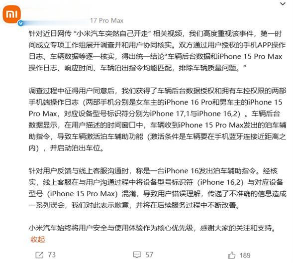据媒体报道,近日“小米汽车突然自己开走”事件引起了广泛关注,成为微博热搜榜首,迅速引发了公众对智能汽车技术安全性的热烈讨论。 10月2日,山东威海的一名小米汽车车主发布的视频引发了轩然大波——他的车竟然在无人操作的情况下“自己开走”了。视频中,车主和一名女子在室内,突然车辆启动并驶出,事后车主明确表示在事发过程中并未碰触手机,且车辆全程有监控,看来事发突然并且没有提前警示。 这一事件迅速在社交媒体上引发了关注,并以“车子自己开走”的话题冲上微博热搜榜,成为消费者对智能汽车安全性担忧的一个焦点。这一问题也让小米汽车面临着严峻的公关危机,尤其是它在智能硬件领域积累的良好口碑遭遇了技术安全的质疑。 小米的官方回应:排除质量问题,找到了“罪魁祸首” 对于这一事件,小米公司迅速回应。3日晚上,小米通过官方微博发布声明,称经过与车主的深入沟通和技术核查,调查结果表明并非车辆存在质量问题。小米解释称,车主的手机(iPhone 15 Pro Max)在车主未操作的情况下,发出了泊车辅助指令,导致汽车激活泊车辅助功能并启动驶出车位。值得注意的是,小米还透露,事件发生时车辆处于手机蓝牙连接的近距离范围内,因此泊车辅助功能被启动,导致车辆无预警“自行”驶出。 然而,小米并未单纯地将责任归咎于技术问题。根据小米的声明,问题实际上出现在设备型号标识符的混淆。车主在与客服沟通过程中,误以为是另一台手机(iPhone 16)操作了泊车指令。经过进一步核查,发现其实是车主的iPhone 15 Pro Max手机误触发了指令。这一解释虽然技术性强,但也透露出智能车联网系统在多设备同步和操作指令确认方面存在隐患。 智能汽车的“盲点”:不容忽视的技术安全风险 尽管小米表示事件的原因已经查明,并且排除了车辆硬件或质量问题,但这一事件暴露了智能汽车在自动化技术方面的隐性风险。智能汽车的“自动化”正是它们最大的卖点之一——车辆通过高度智能的系统控制,能够实现自动驾驶、自动泊车等多项功能。然而,正是这些自动化功能在没有清晰界定权限和操作流程的情况下,容易造成不必要的风险。 车主并没有主动操作手机,系统就自动执行了车辆的泊车指令,这其中的技术漏洞不容忽视。智能汽车的操作系统是否存在设计上的不足?智能手机与汽车的连接是否存在隐性触发机制?这些问题值得深思。如果智能汽车在“无故障”的情况下也能无声启动,背后可能的隐患比我们想象的要大得多。 从消费者的角度来看,智能汽车的这种“自发”行为如果没有得到有效的预警和安全防范机制,将极大影响用户的信任度和品牌的声誉。对于一个车主来说,自己的车辆能够在无人操作的情况下启动,且这种行为不被及时通知,这不仅是一个技术问题,更是一个关于“安全”的重大问题。毕竟,汽车的安全性不仅关乎驾驶员的生命财产安全,更关乎其对品牌的信赖与忠诚。 公关危机的“烟雾弹”:小米如何应对用户信任危机 事件发生后,小米公司并未直接将责任推给用户或设备,而是迅速回应并表示排除硬件质量问题。对此,车主也在微博下方留言,表明数据核实无误,感谢小米团队的专业态度。然而,尽管公司及时做出了回应,消费者的信任危机依旧难以短时间内修复。 小米是一家有着强大品牌号召力的科技企业,过去凭借其性价比高的手机产品迅速占领市场,并在智能硬件领域树立了稳固的口碑。但对于“新手”汽车制造商来说,如何跨越技术难关并赢得消费者的信任,远比推出一款“性价比”优秀的产品更为复杂。此次事件对于消费者的心理冲击较大,不少人开始质疑小米在自动化驾驶系统上的成熟度。即便官方回应迅速并且技术解释有理有据,但事件的处理方式和后续公关危机的应对,依旧显得不够完善。 有不少网友认为,智能汽车作为一个极为高科技的产品,安全性是其最根本的要求。如果连最基本的“防止车辆自行启动”都无法做到,那么其他更加复杂的功能是否能如约履行其承诺?如果未来小米继续扩展汽车业务,如何保证产品的安全性,成为它未来能否顺利扩展市场的关键。 智能汽车发展的“技术困局”:如何在安全和创新之间找到平衡 目前,市场上的智能汽车产品层出不穷,各大品牌纷纷投入巨资研发自动驾驶和智能互联技术。然而,智能汽车的技术盲点却始终存在,技术的复杂性与车主对安全性的需求之间,往往存在着难以调和的矛盾。无论是车辆的自动泊车功能、还是手机控制车辆的远程指令,每一项看似便利的技术,背后都可能隐藏着不容忽视的安全隐患。 智能汽车的核心问题,正是如何在创新和安全之间找到平衡。自动化技术和智能互联功能,能够极大提升消费者的驾驶体验,但一旦技术失误,就可能导致无法预料的危险。对于智能汽车制造商来说,如何增强系统的稳定性与安全性,如何确保每一项指令和操作都能够得到有效的监控与验证,将是未来必须面对的挑战。 只有安全才能支撑智能汽车的未来 此次小米汽车“自行开走”事件,虽然通过调查已排除车辆质量问题,但它依然提醒我们,智能汽车行业在技术创新的同时,必须时刻保持对安全性的高度警觉。每一次技术的进步,都必须以用户的安全为前提。在未来,小米乃至所有智能汽车制造商,如何打造更加安全、更加稳定的智能系统,将